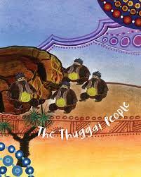 In the Dreamtime there lived the Goodoo and Thuggai peoples. They looked different to the Murri people who lived nearby. While the Murri’s lived in the rocky overhangs and hunted bigger animals, the Goodoo people lived under the shade of the Coolabah trees and would dig up witchetty grubs. The Murri feared the Goodoo and Thuggai, and their differences. It is up to the Ancestral Beings and the Clever Man, Biamme, to teach the Murris, Goodoo and Thuggai and to remind them that differences are part of the Dreaming Creation.